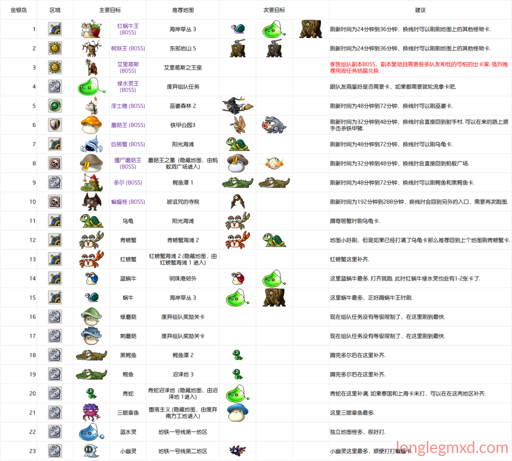 5. 每个区域优先去绕BOSS和记录击杀时间,乘BOSS未进入刷新时间时可以刷小怪卡.