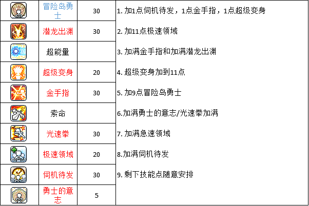 冒险岛勇士9点就够了,9级提供跟10级一样属性增幅,只是少了30秒持续时间.